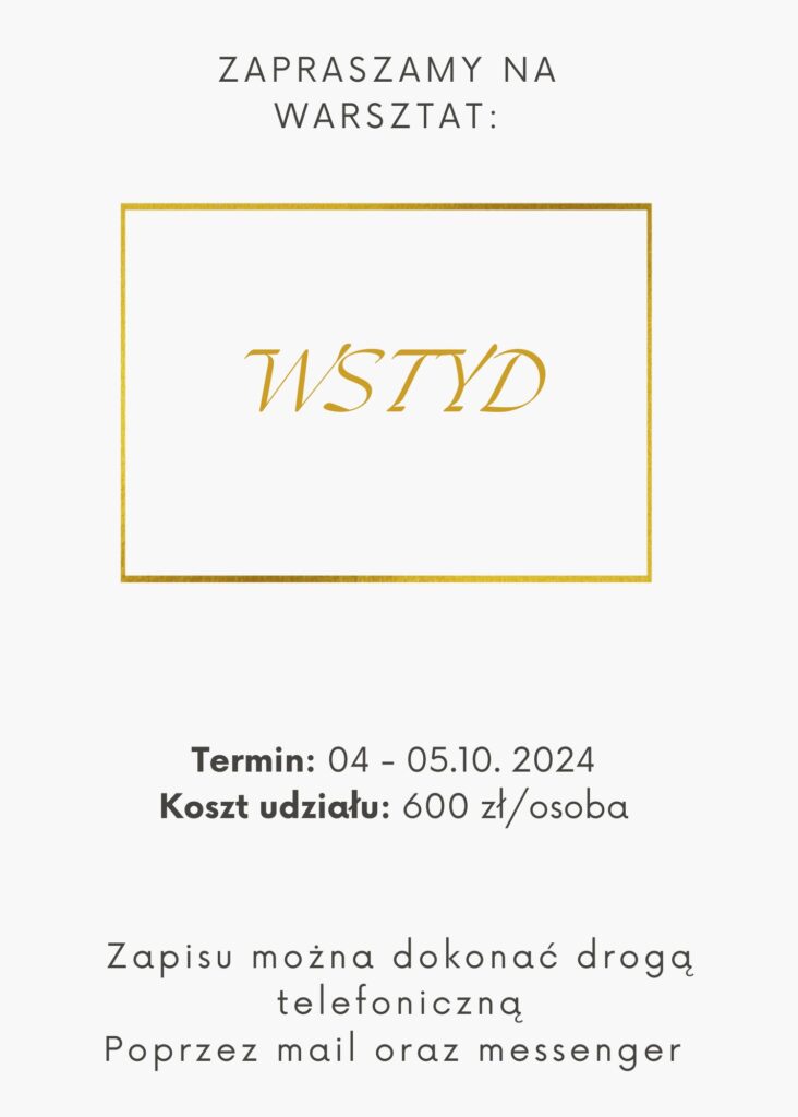 Zapraszamy do udziału w warsztacie „Wstyd” – zapewnij sobie miejsce dziś i zacznij budować lepsze relacje ze sobą i otoczeniem!
